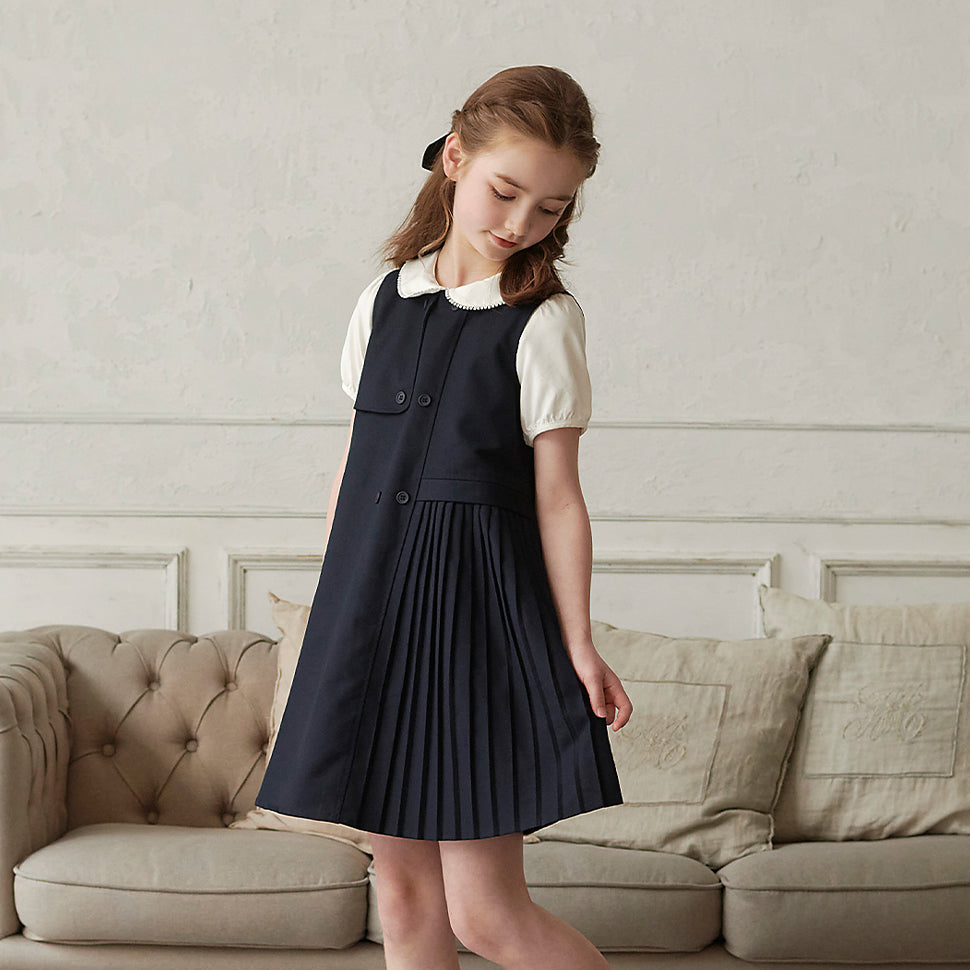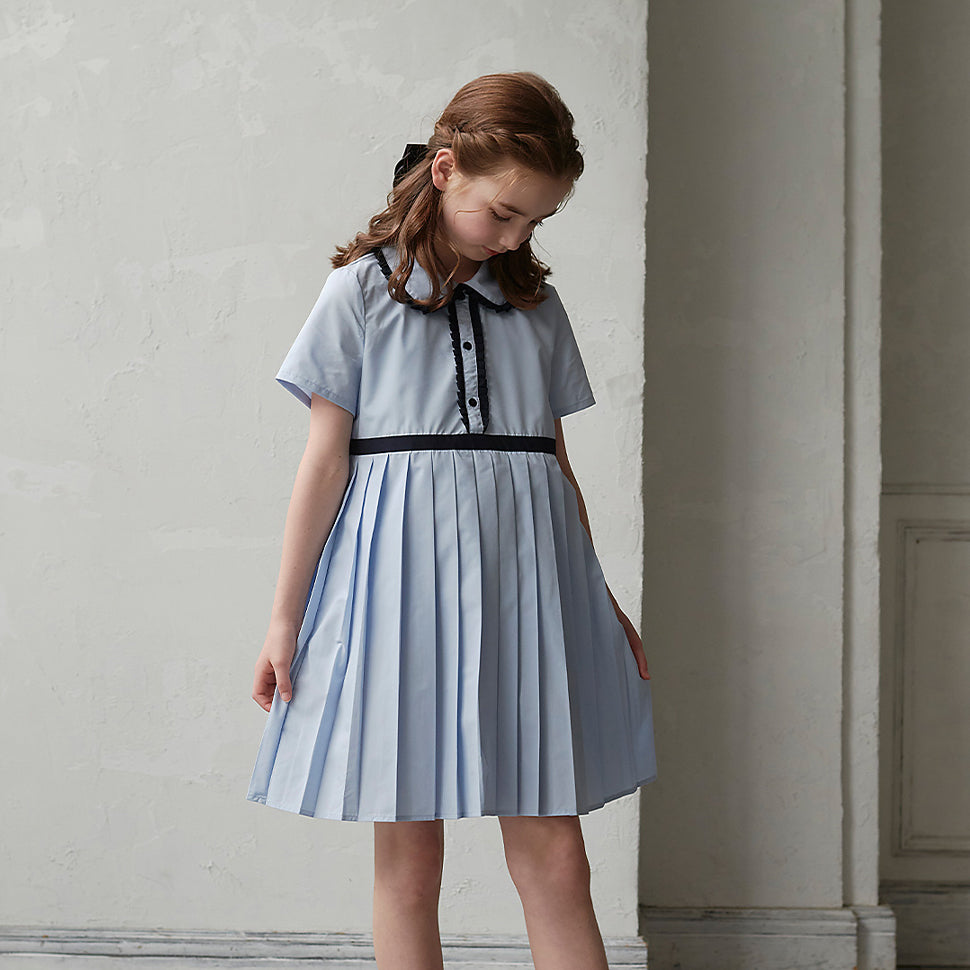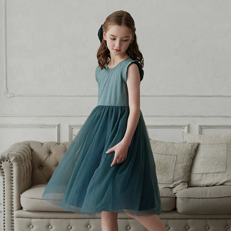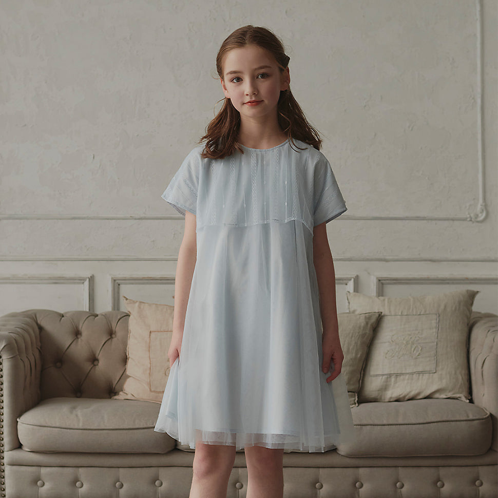 爽やかなライトブルーが印象的な、チュール素材とコットン素材の二重仕立てワンピース