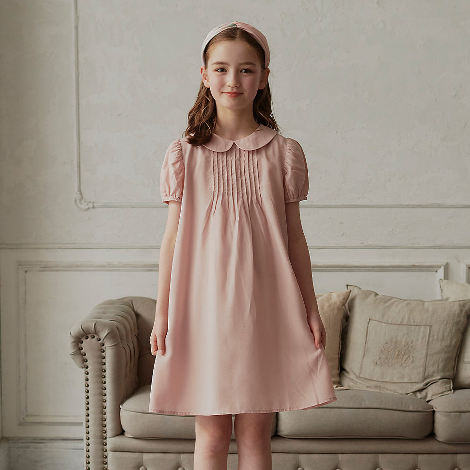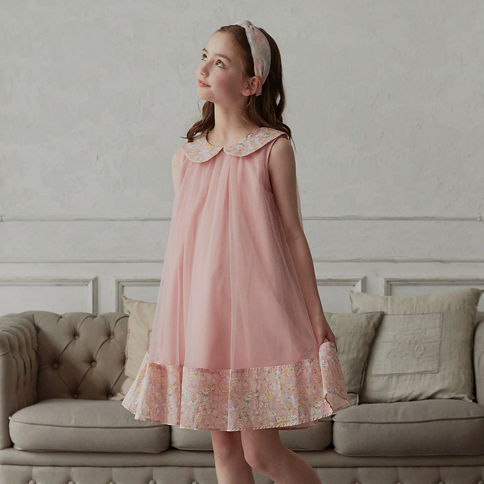 ふんわりとしたチュール素材が愛らしい印象を与える、ピンクカラーのワンピース
