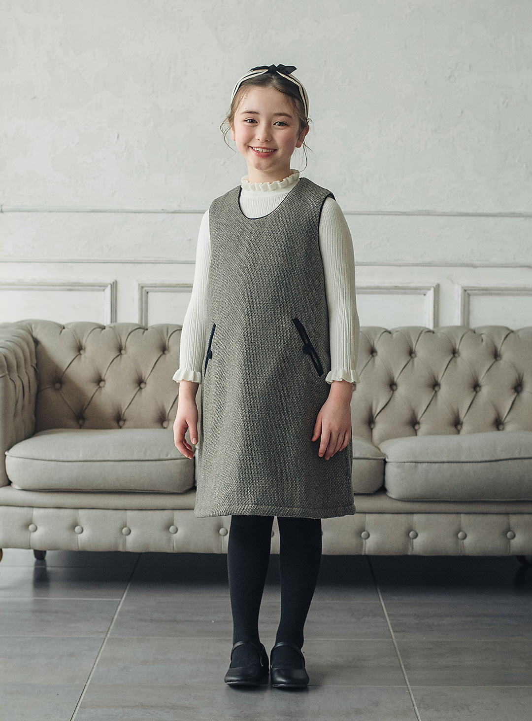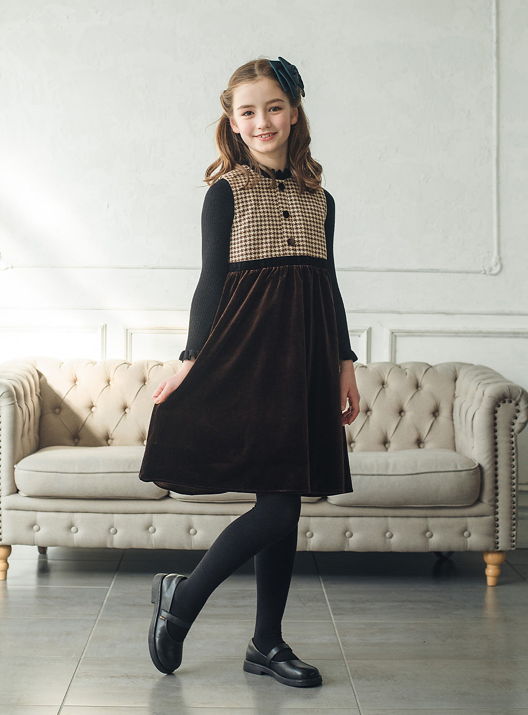 ヘリンボーン×ベロア切り替えワンピース