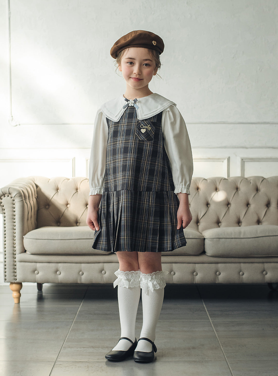 チェックブラウス×ジャンパースカートセットアップ