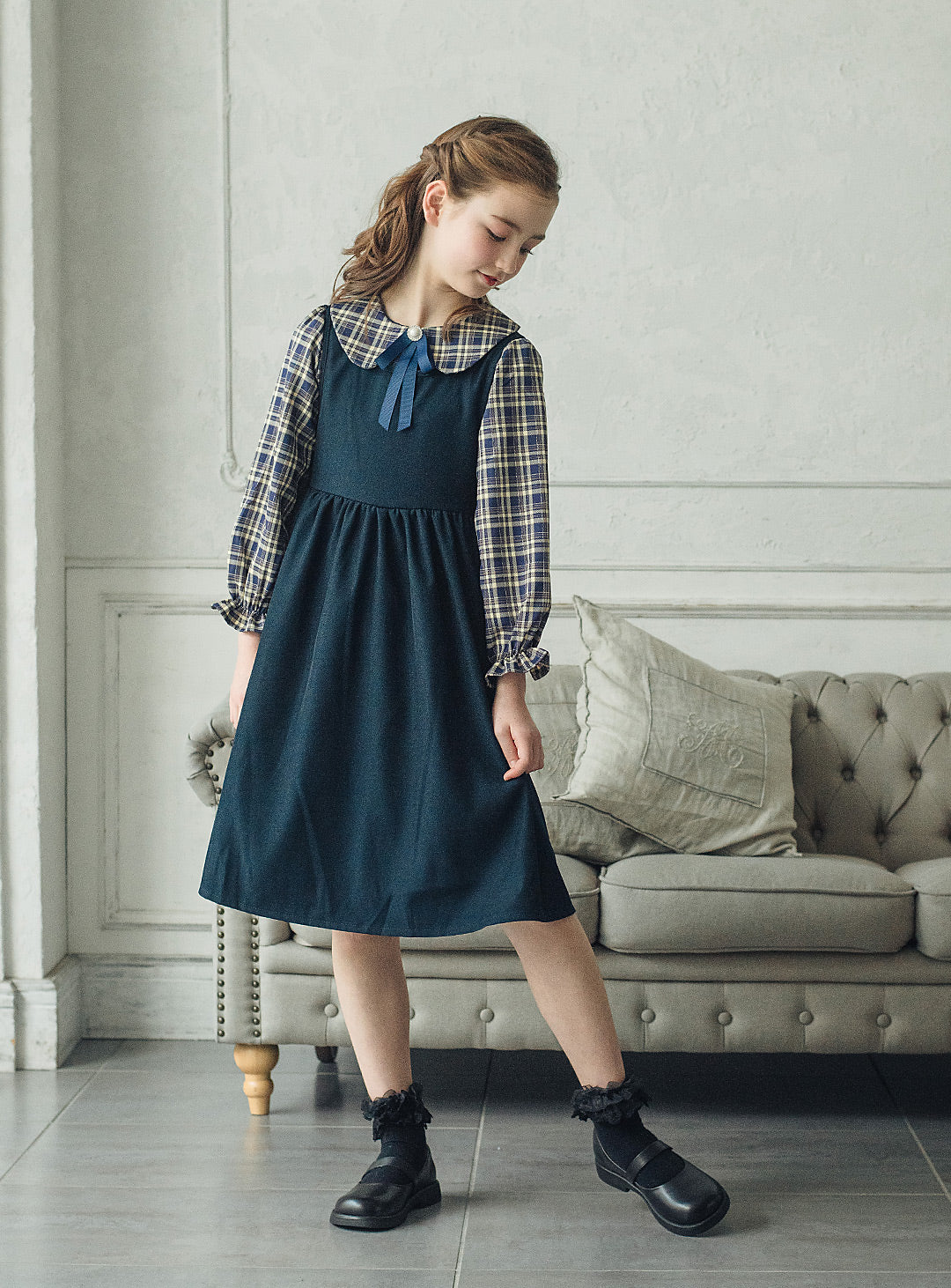 リディアネイビーチェックジャンパースカート