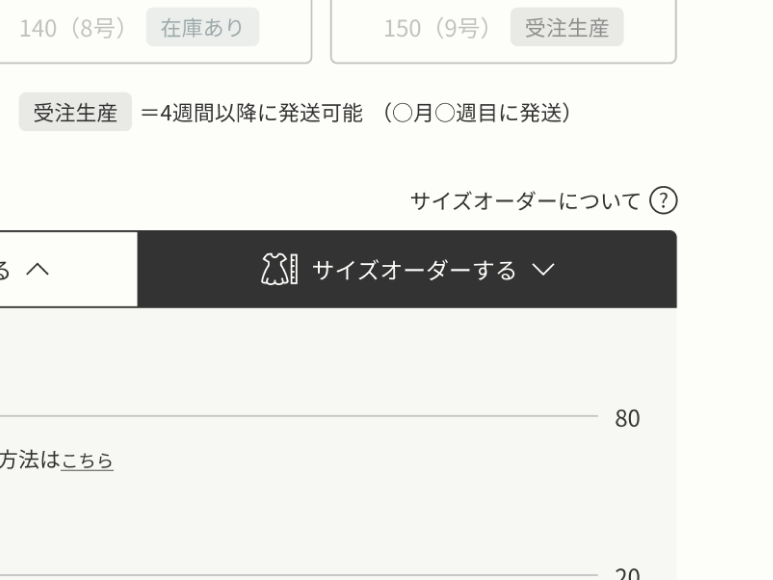 このサービスは、「サイズオーダー可」のアイコンが付いた商品が対象です。