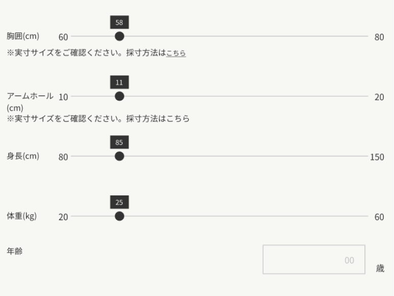 胸囲、背丈などの上見頃のサイズ調整は全額無料です。