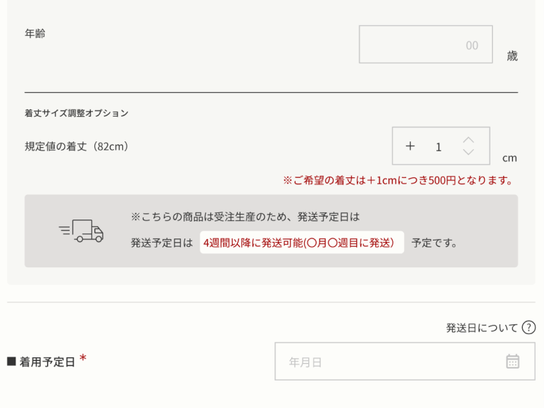 着丈を伸ばす場合のみ1㎝ごとに500円の追加料金が発生します。