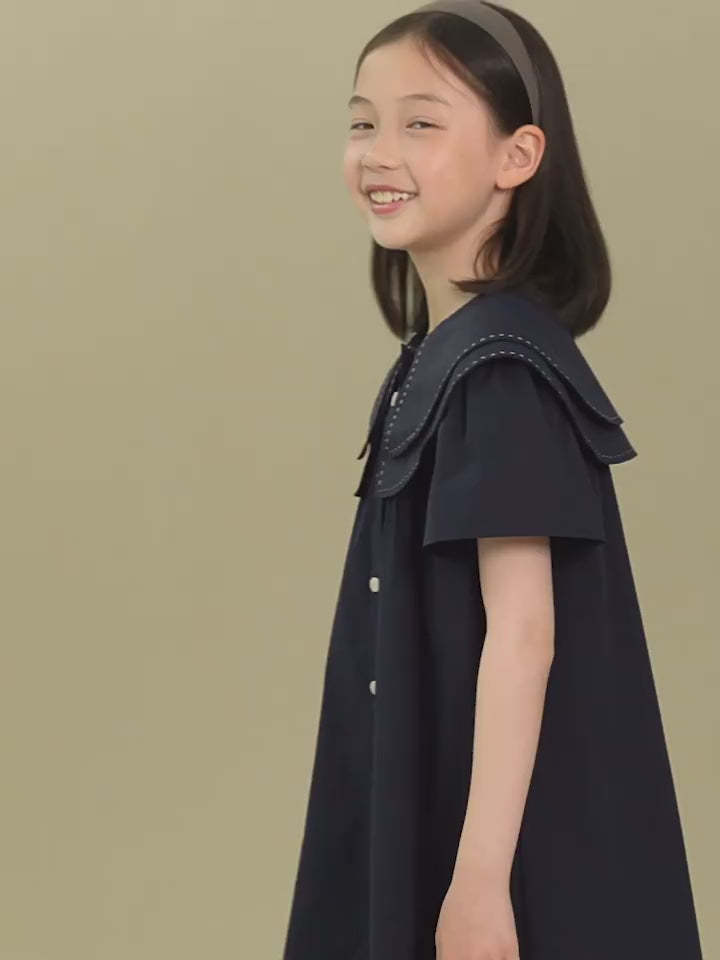 K5087 - ステッチ入り2段ビックカラーネイビーワンピース