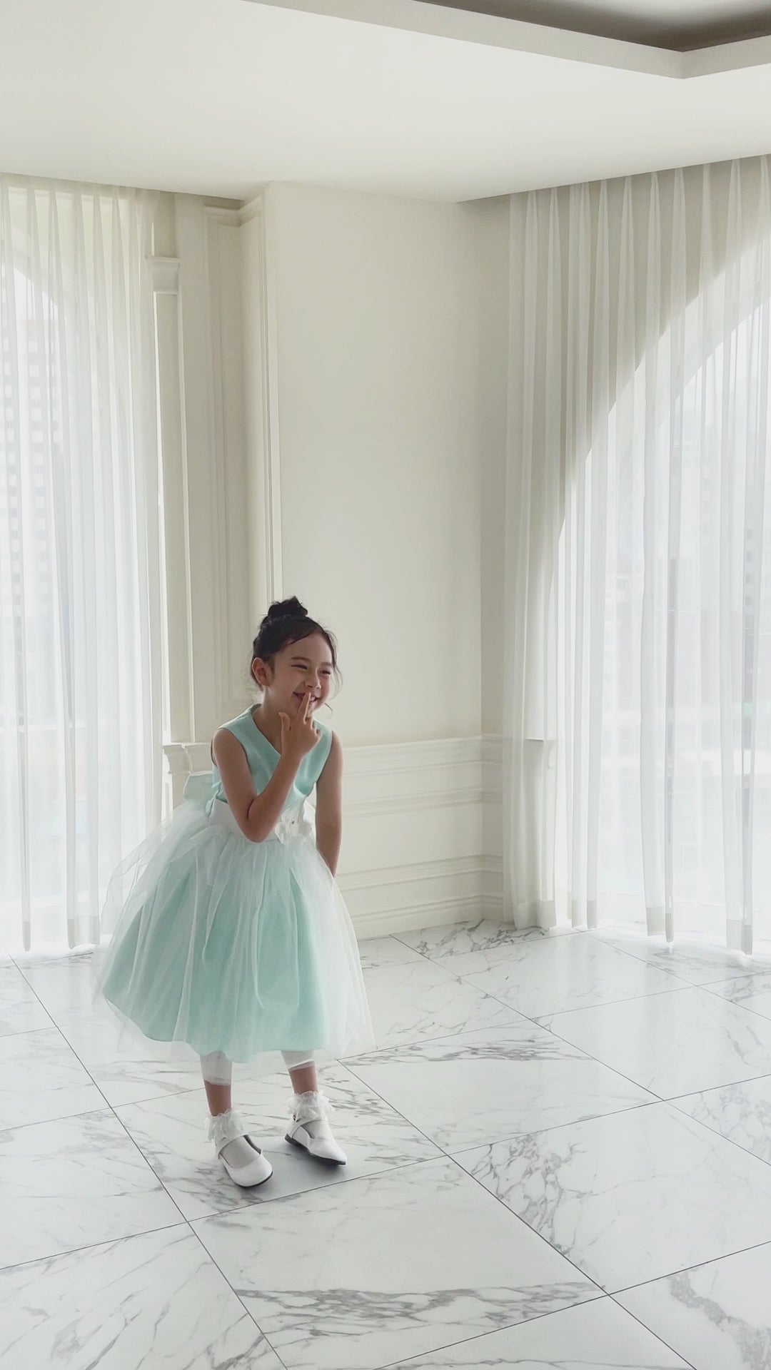 爽やかなミントブルーカラーを基調としたオリジナルドレスです。