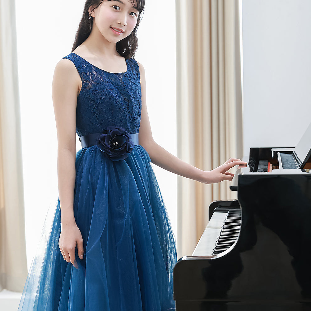 深みのあるネイビーブルーが魅せる、上品なレース&チュールドレス。